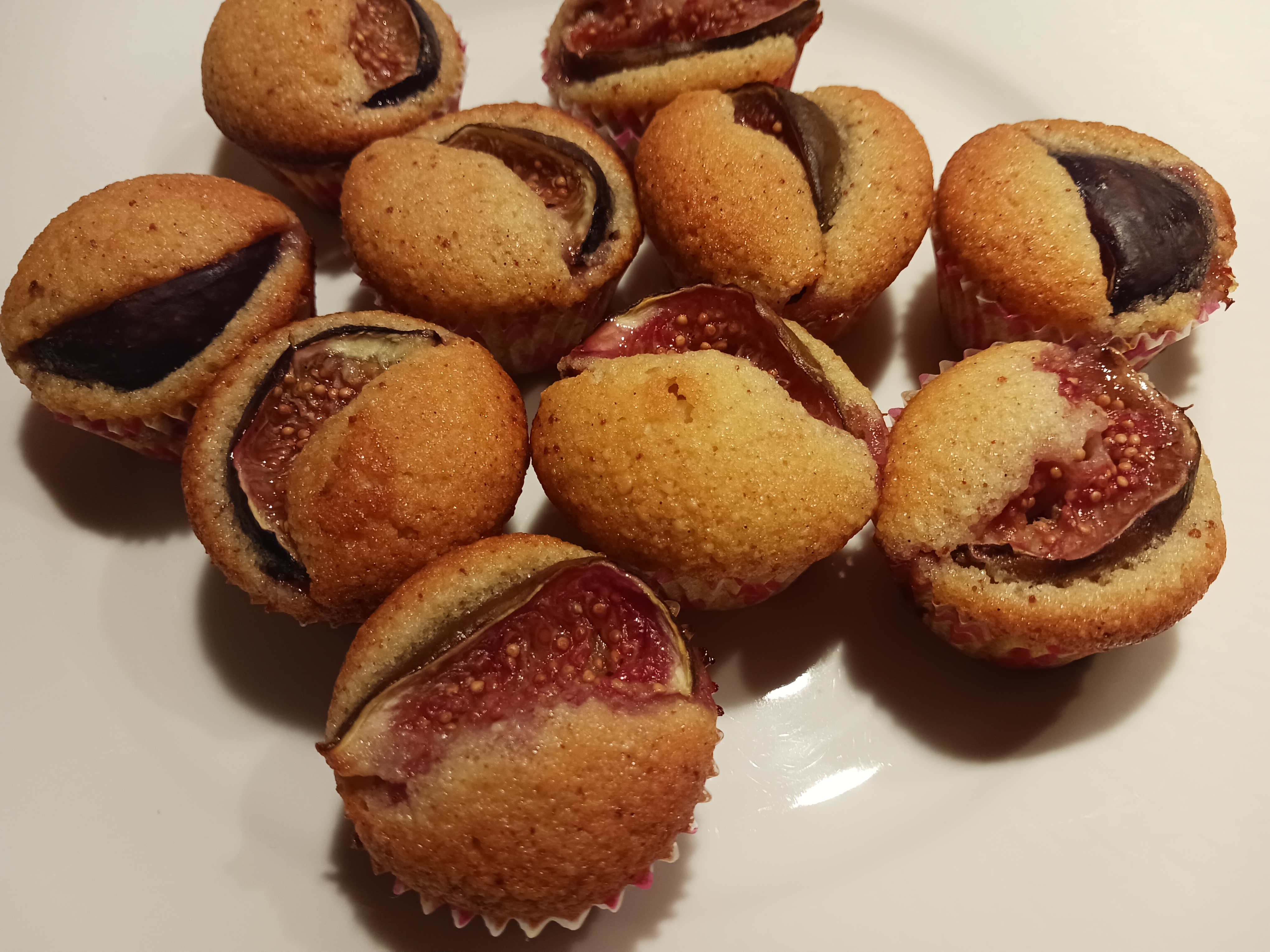 Fikonfinancier  – små mjuka kakor med knäckig smak av brynt smör, mjöl och mandelmjöl smaksatt med vaniljfrön och med klyftade färska fikon, som en minimuffins.