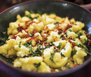 Recept med smakgaranti är dumt att inte prova. Nu handlade det om en trerätters middag. Själva huvudrätten bestod av en lammstek som sakta och mycket mycket länge tillagats på låg värme i massor (Jo massor..!!) av olivolja och till den ett antal läckra tillbehör. Vi gjorde ett urval, vilket var svårt. Men det bortvalda får vi prova senare och för att inte glömma bort receptet i den stora receptarsenal vi har i form av kokböcker, tidningar, sparade matprogram och utklipp – spar vi det här.