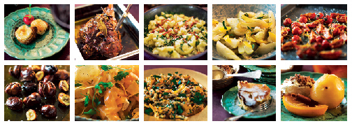Det var den i särklass bästa middagen på länge. Lammet var det möraste kött jag någonsin ätit och tillbehören särskilt den citrusinkokta fänkålen var ljuvlig och lätt. Ugnsbakade tomater är alltid gott och i detta recept med strimlat apelsinskal som blivit lite karamelliserat i ugnen passade mig bra. Stompen var mäktig och god. Alla tillbehören vi provade passade så bra med lammet. Tyvärr hann vi inte synka och rosta kastanjer till…
