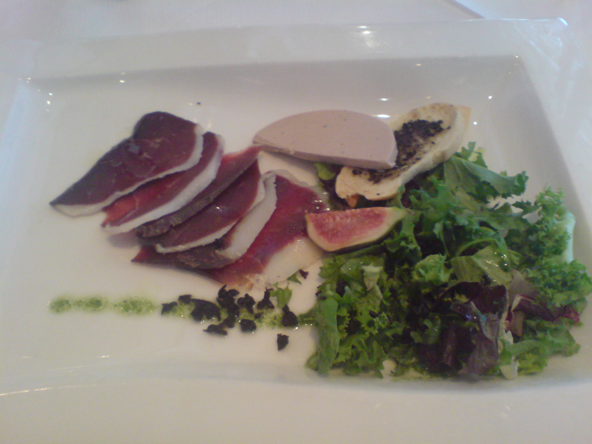 Food Garden » Lufttorkat ankbröst och lammpaté med färskt fikon och olivcrostini