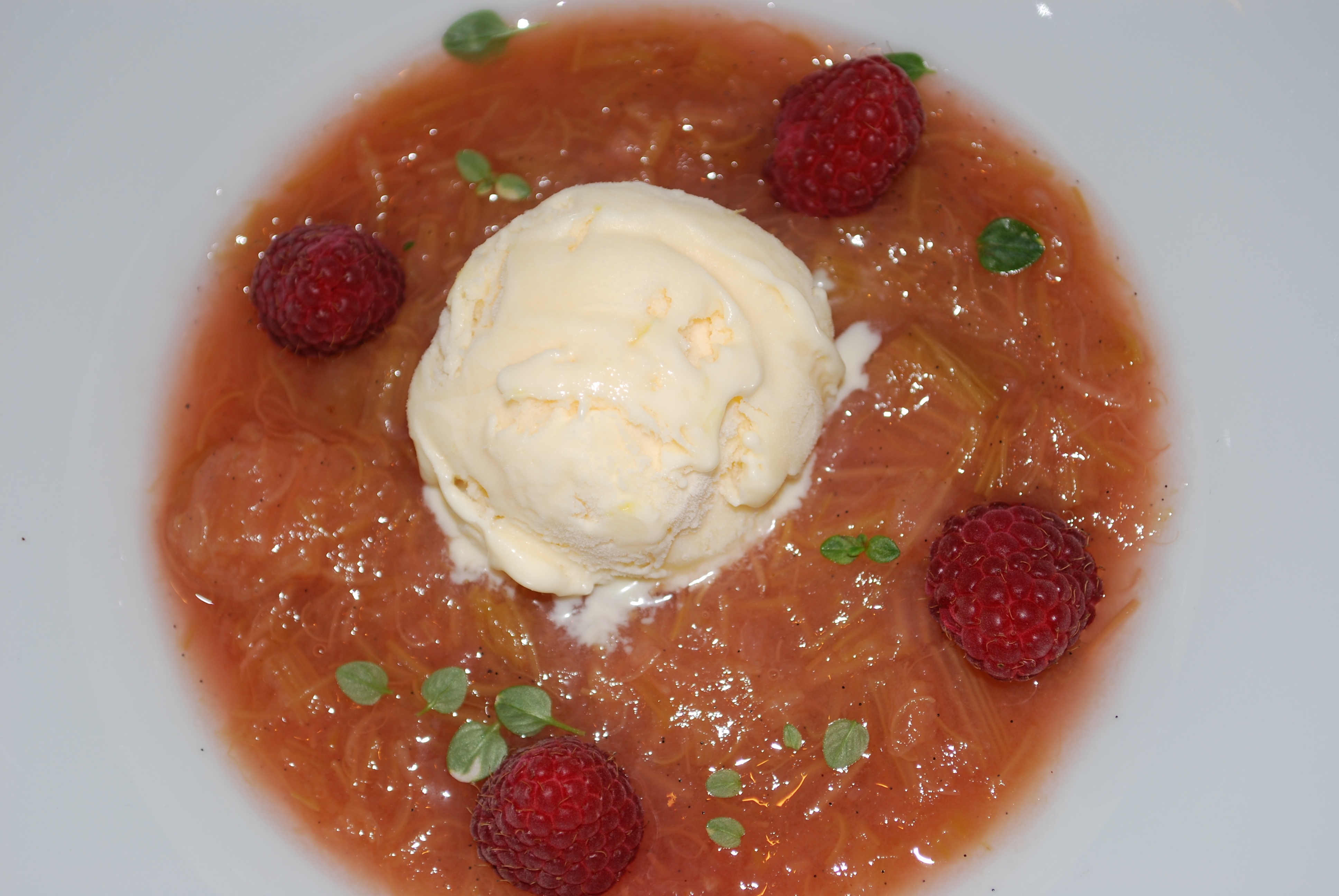Per Lei » Rabarberkompott med citron-mascarpone semifreddo och färska hallon