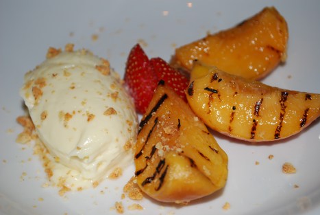 Per Lei » Vitchokladbavoraise med grillade amarettomarinerade persikor