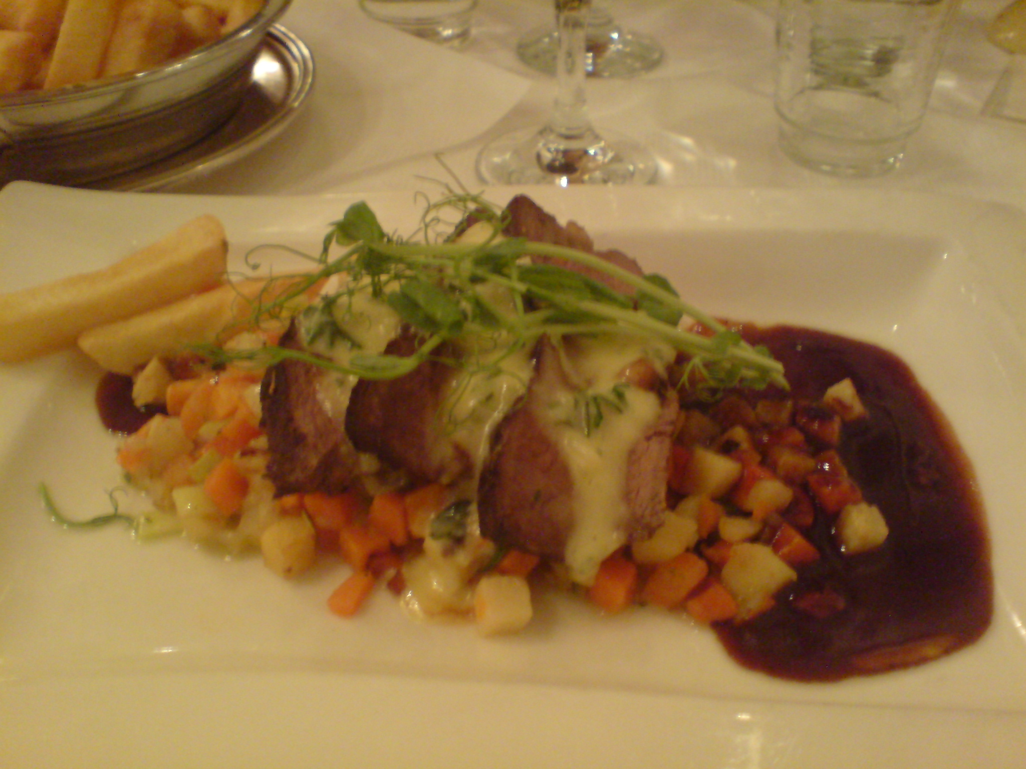 Food Garden » Helstekt oxfilé med schezuanpepparsky, persilje- aiolisås och råstekt rotsakspytt