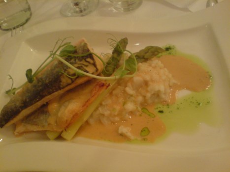 Food Garden » Lättrökt röding med fänkålsrisotto, kräftsås och basilikacoullis