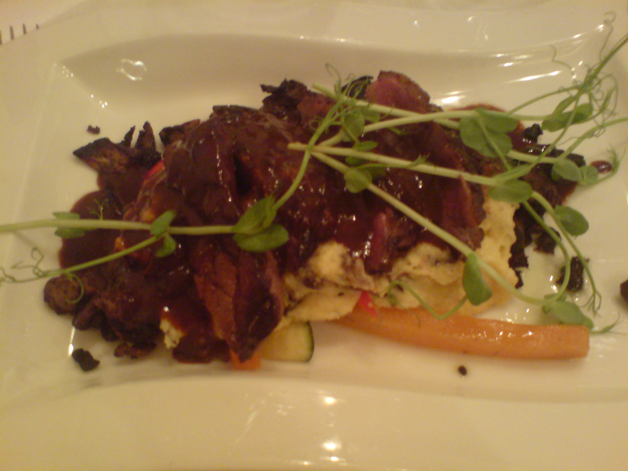 Food Garden » Rosastekt vildandbröst med krämig polenta smaksatt med Karljohanssvap serverad med ankleversås