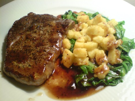 Veckomeny vecka 48 » Entrecôte med polentapytt på romanbädd med portvinsreduktion
