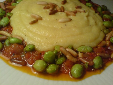 Veckomeny vecka 49 » Polenta med tomatås och vitlöksfrästa sojabönor