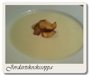 Jordärtskockssoppa med jordärtskockschips med smörstekt vitlökstoast