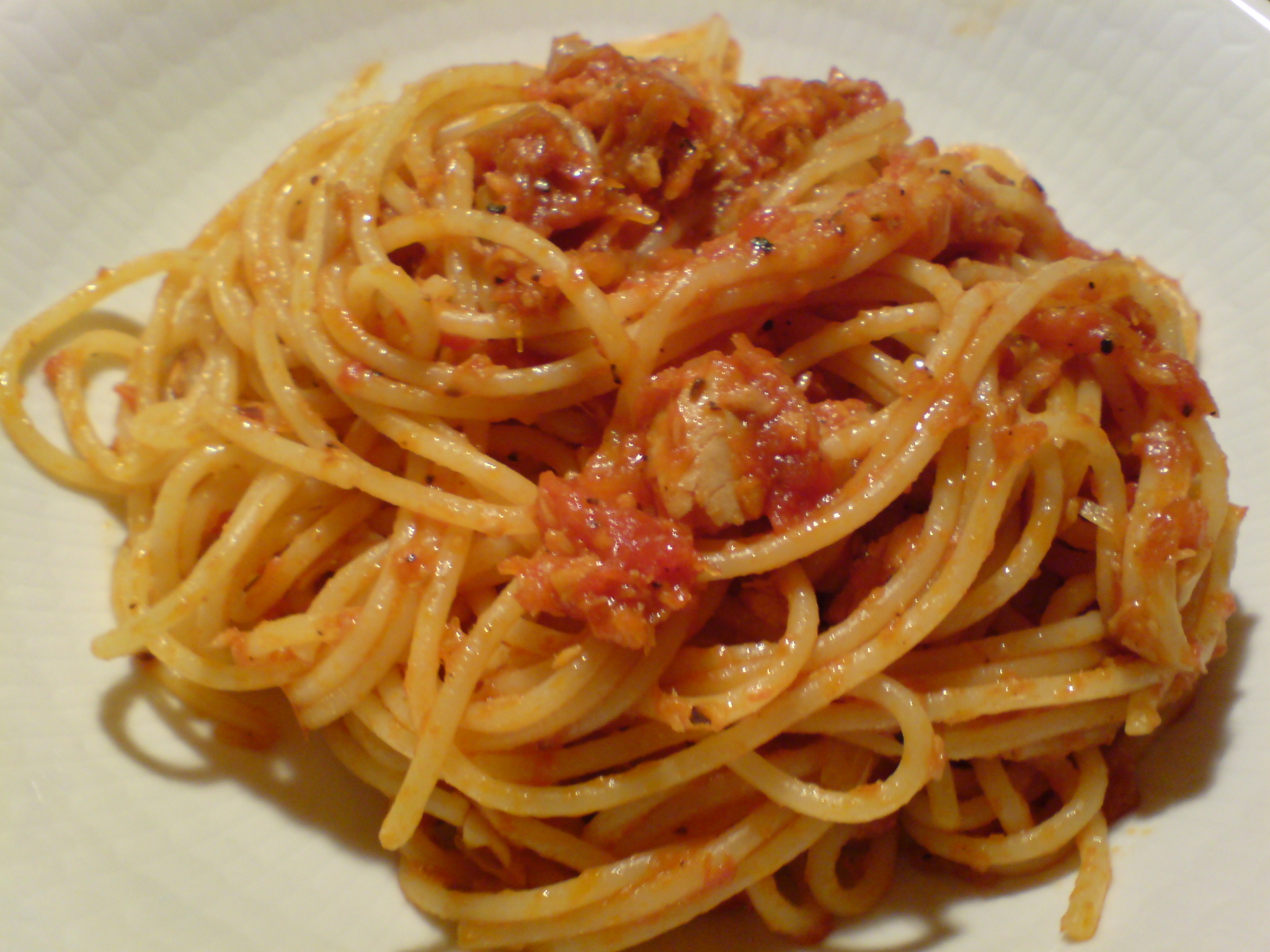 Veckomeny vecka 9 » Spaghetti med tomatig tonfisksås