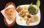 Den rekommenderade rätten var lammlägg som legat i marinad i 16 timmar som serverades med ris samt låg i någon typ av grönsaksgryta innehållande linser, aubergine, blomkål. Grytan var mycket god och lammlägget underbart mört. Kryddorna i marinaden hade verkligen kommit in i köttet och det var så gott. Lycka! Dock skulle det varit praktiskt med en köttkniv att skära loss köttet från benet. Rätten serverades på ett för litet fat för så fort vi försökte skära ville grönsaksgrytan åka över kanten.