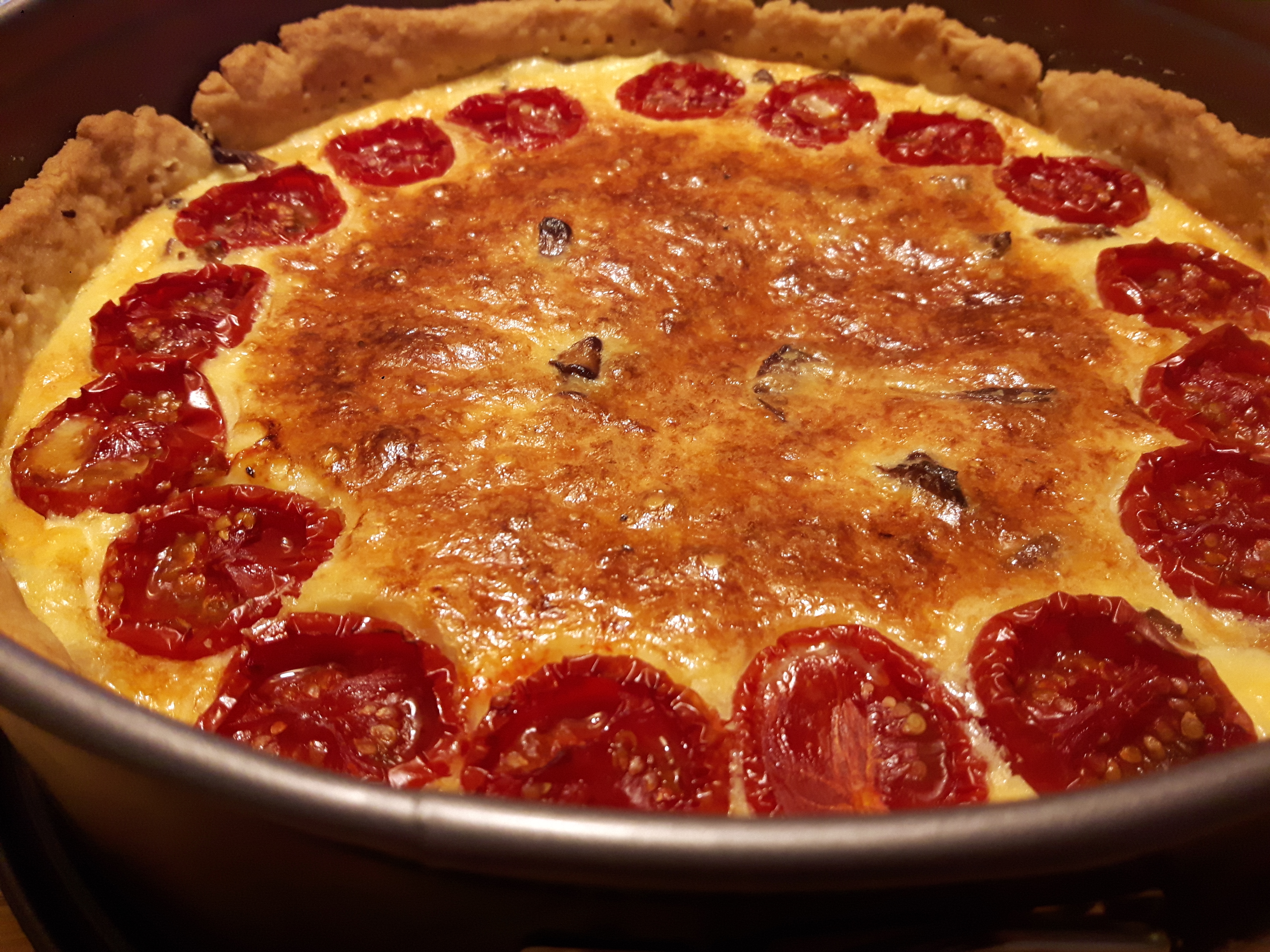 Det är som en västerbottenspaj uppgraderad med gula kantareller och tomater i det här fallet ugnsbakade så att smaken intensifieras. För de som missat västerbottenspajen på kräftskivan och sommaren gått mot höst.