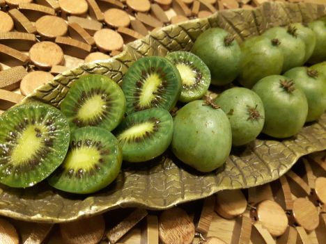 Äntligen hittade jag kiwibäret, som funnits i Sverige sedan 2016, i handeln här ute i Stockholmsförorten. Jag har varit så sugen förut att jag övervägt att handla en matkasse på nätet för att få hem dem. En liten ask på 25 för 30 riksdaler. Lite att jämföra med andra bär, som hallon. Det blir ca 10-20 kiwibär.