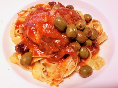 En mild vårig pastarätt med de mindre fläskfärsbullarna som kokas färdigt i den milda goda såsen med ordentligt med dragon och liten hetta av cayenne. Det här är en utbyggnad på en sparrispasta där jag hade tänkt lägga till kycklingbullar när jag såg kycklingfärs i butiken och halvkilosknippen med färsk grön sparris. Jag åt sparrispastan häromdan och den här gången använde jag det vinet med samma druvor som rekommenderades i och drack det till vilket höjde en redan ljuvlig rätt till en höjdare. Så använde sjävklart samma vin här