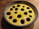 Jag hittade askar på 125 gram med färska fina björnbär för bara 20 kronor på Lidl. Jag hade tänkt att baka Clementinkaka till min födelsedag, men när jag fick syn på björnbären fick jag fundera lite. En ask björnbär går ju till att äta som godis i soffan och sen kanske de skulle fungera aatt sticka ner björnbär i clementinkakan. Så fick det bli och det blev mycket lyckat. Jag la till lite bittermandel och en nypa salt och det blev en fantastisk födelsedagsfrukost och sedan fika.